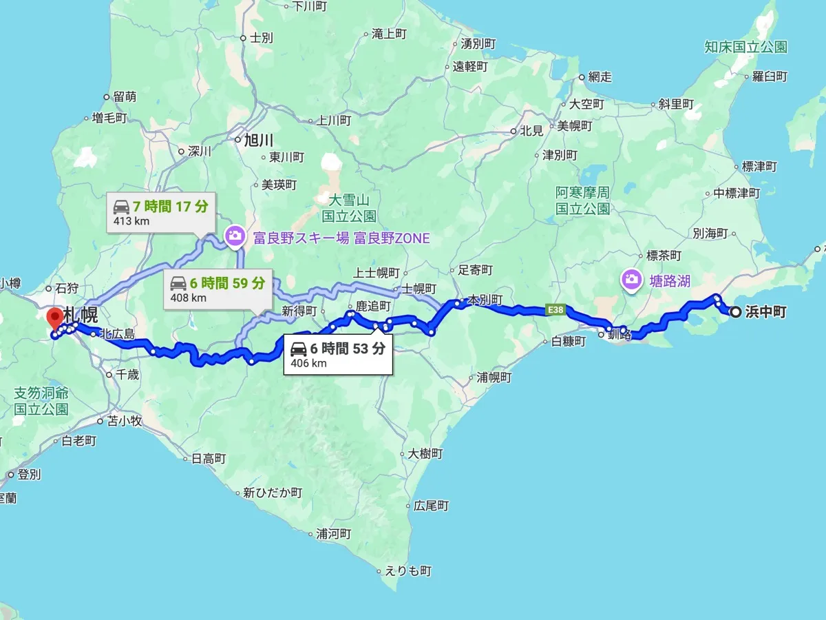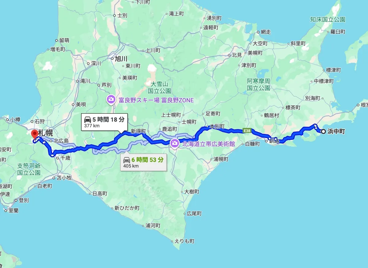 浜中町中心部から車で約6時間。