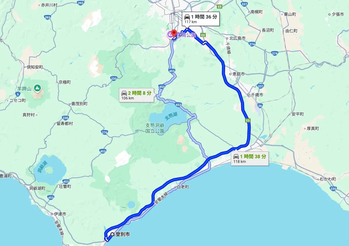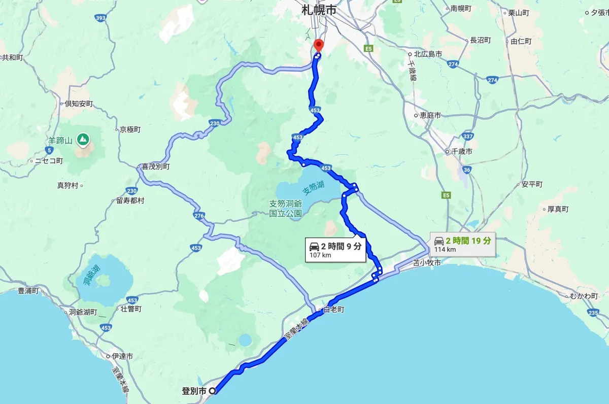 道央自動車道「登別室蘭IC」から札幌南ICまで進み、