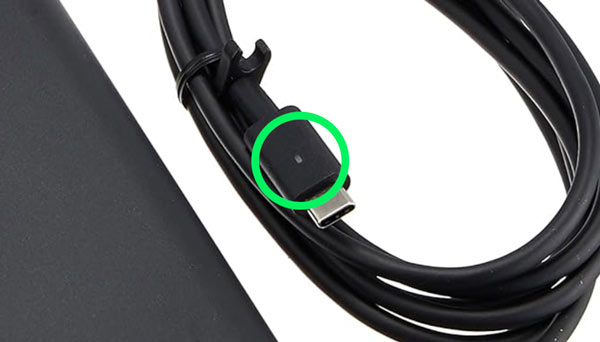 パソコンにACアダプターを挿すと、ACアダプターのLEDランプが消える。