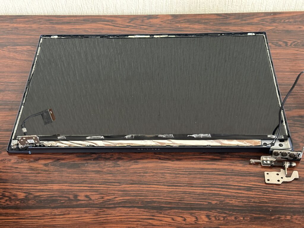 このパソコンの場合、ヒンジが故障しているというより、ヒンジのねじ受けが天板から剥がれてしまった、という方が正しいです。