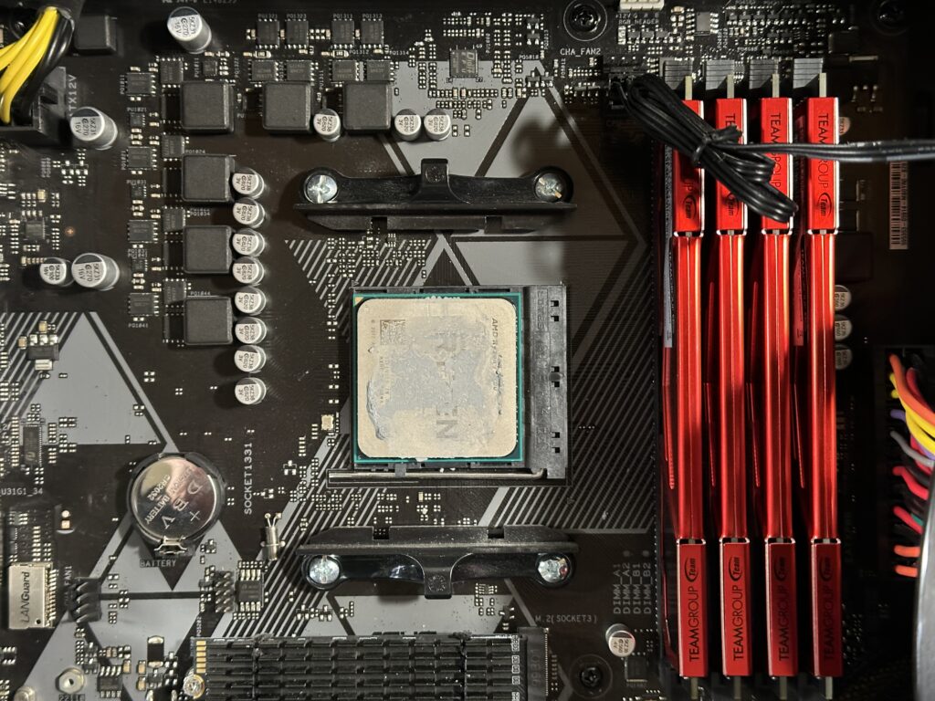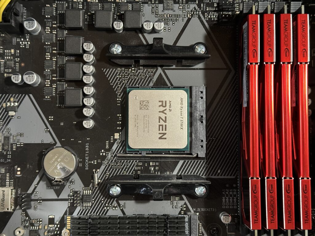 持込のCPUは Ryzen 5700kです。Intelと大きな違いとして、同じマザーボードでCPU交換だけで高性能化が図りやすいのは、AMDの大きな特徴ですね。
