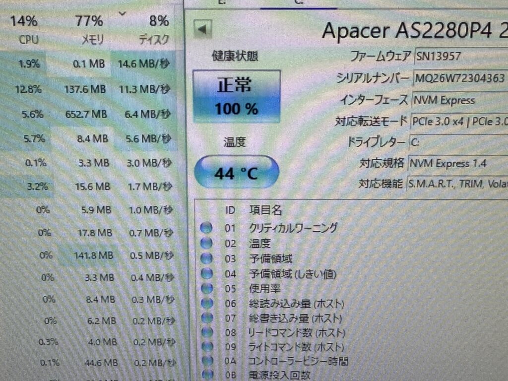しかしSSDの診断ツールを見てみると、温度が高い事に気づきました。