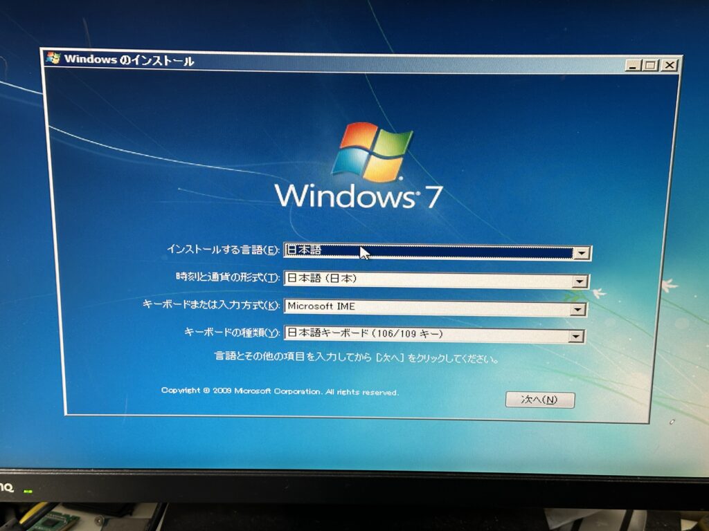 SSDに交換をしてから、Windows7のインストーラを起動し、Windows7のインストールを進めていきます。